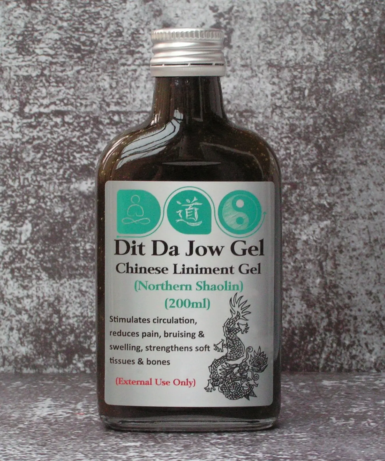 Dit Da Jow Liniment Gel (Northern Shaolin) 200ml with lotion pump. This product is a gel version of our popular Dit Da Dow Liniment (Northern Shaolin). The product has the advantage of being much thicker meaning that it is less messy than the traditional quite runny Dit Da Jow. The product is turned into a gel using a small quantity of natural thickeners and contains a natural moisturiser